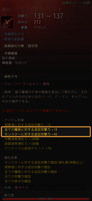 変更後 (「全ての種族に対する追加攻撃力」の数値が「モンスターに対する追加攻撃力」に変更され、種族合算なしの数値に含まれる) |