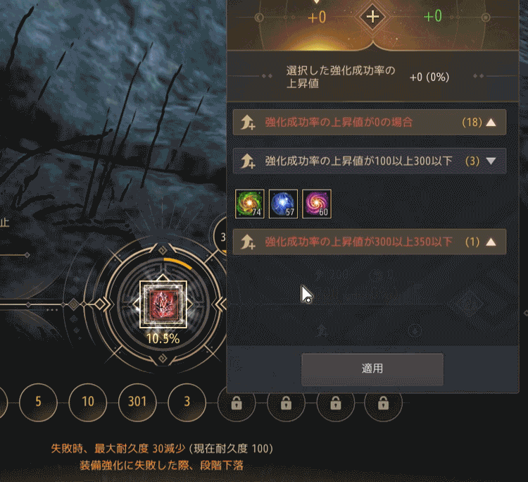 - 強化成功率上昇アイテム(ヴォルクスの助言/ヴォルクスの叫び/捕食類など)を使用して適用する際、確認メッセージが表示されるようになりました。