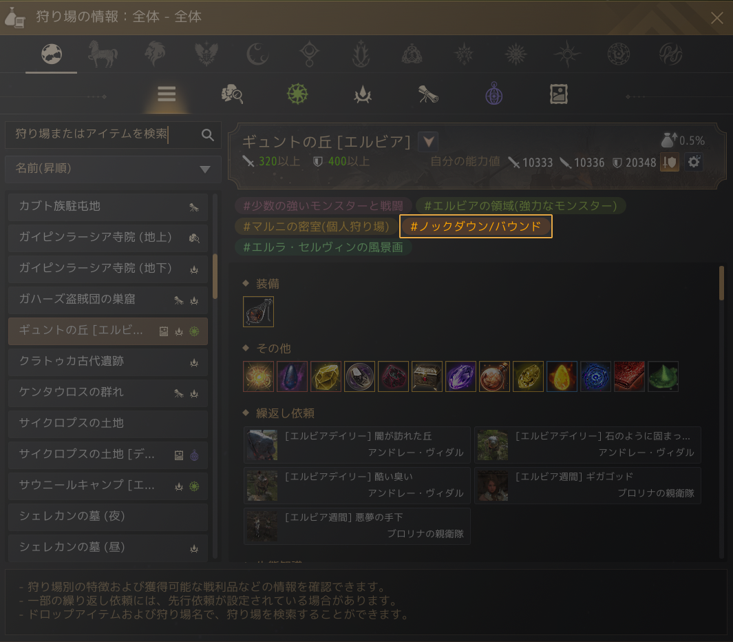 - エダニア地域以外の狩り場も、狩り場の情報UIを通じて各狩り場でモンスターが与える状態異常の種類を確認できるように改善されました。