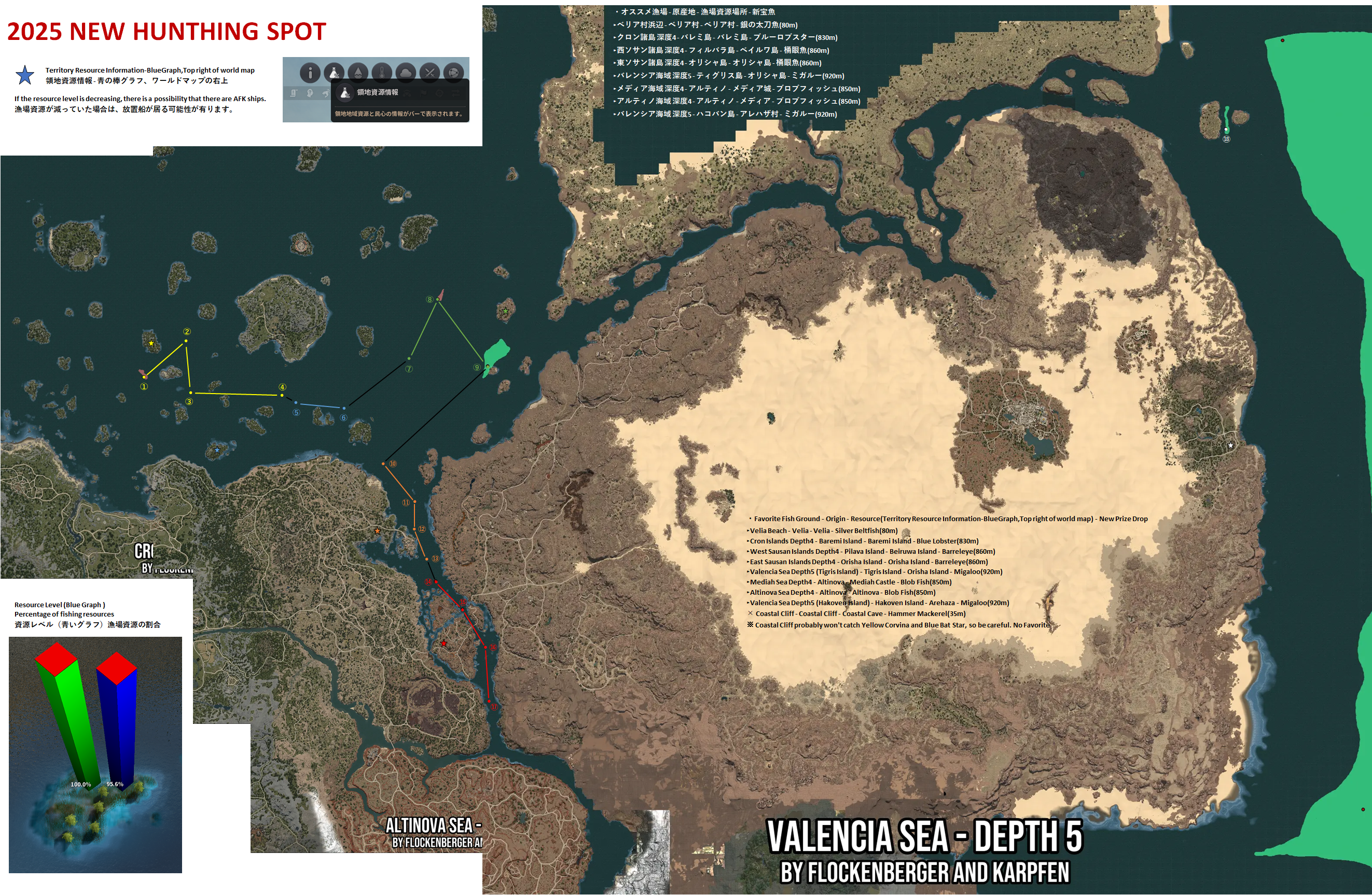 ソサン諸島(Sausan Islands Depth4)は、異なる2つの漁場資源エリアに分かれている